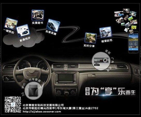 車輛啟動(dòng)后,“自駕寶”自帶的3G/4G+WiFi隨之啟動(dòng),使車輛瞬時(shí)接入高速移互聯(lián)網(wǎng);在車輛行駛過(guò)程中,“自駕寶”高清攝像頭全時(shí)影像記錄,并將沿途抓拍的視頻/照片實(shí)時(shí)同步至手機(jī)端;此時(shí),車主可將行車軌跡、行車影像/圖片、行車數(shù)據(jù)通過(guò)云端的自動(dòng)整合,把當(dāng)前的路況、街景、沿途風(fēng)光實(shí)時(shí)分享至微博、微信等互動(dòng)平臺(tái),讓朋友、家人與駕駛者共同感受不一樣的駕駛樂趣。