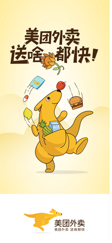 在產品形象方面,一只可愛的袋鼠成為了美團外賣的吉祥物,這也是11月11日起,美團外賣微博懸念“美團外賣新伙伴”的最終答案。對于產品形象的設計,美團外賣表示,袋鼠“袋子大、囊括物品多、跑得快”的特點,與美團外賣品類豐富、送餐速度快的定位一致,能夠為消費者提供全面的選擇、優質的體驗。