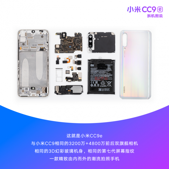 小米CC9e在擁有輕巧機身的同時,旗艦體驗卻絲毫不含糊,與小米CC9 相同的3200萬+4800萬前后雙旗艦相機、相同的第七代屏幕指紋、相同的4030mAh電池,小小機身內涵豐富。