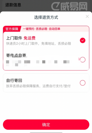 小編體驗,在手機天貓App發(fā)起退貨時,選擇“上門取件免運費”,把包裹交給快遞員即可,無需再額外支付費用。