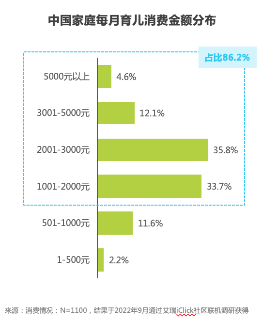 從白皮書的調研數據來看,年輕一代的寶媽寶爸舍得為孩子花錢,八成以上家庭月消費超千元,近半數家庭每月育兒消費占家庭總消費比例的25%-50%。同比其他消費,媽媽們對各類母嬰育兒產品的滿意度處于較高水平,其中對奶粉、紙尿褲的滿意度排在前列。