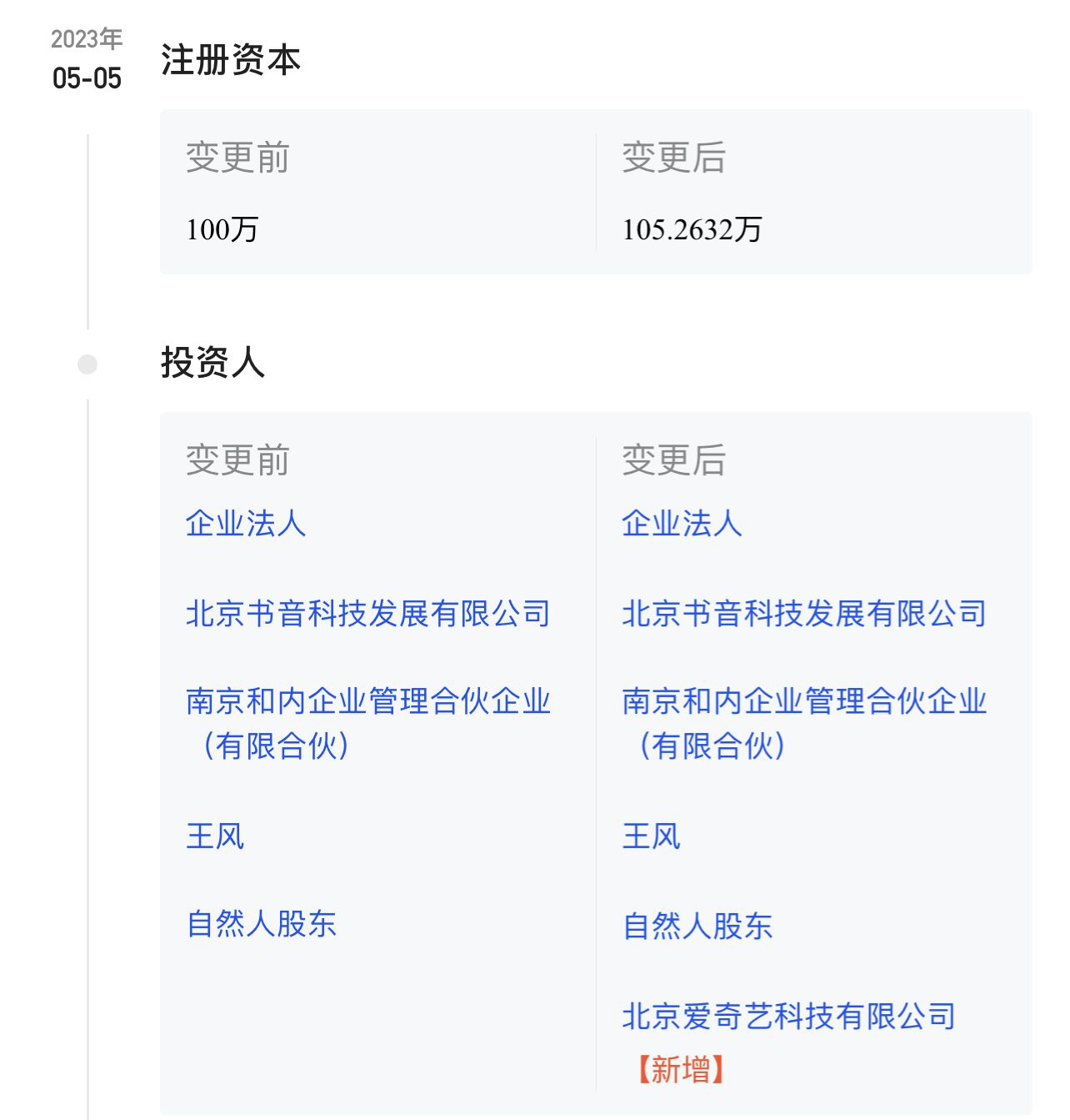 此外,"我看App"小編從啟信寶發(fā)現(xiàn),北京酷鯨影視文化產(chǎn)業(yè)發(fā)展有限公司近日發(fā)生了工商變更,新增北京愛(ài)奇藝科技有限公司為股東;同時(shí),注冊(cè)資本由100萬(wàn)元增至約105.26萬(wàn)元。