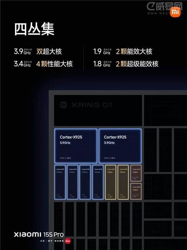 最大驚喜來自小米玄戒O1,作為首款殺入前五的國產(chǎn)自研芯,不僅采用臺積電N3E先進制程,在CPU架構(gòu)上采用了四叢集十核:2顆X925超大核+4顆A725高頻大核+2顆A725低頻大核+2顆A520小核,X925超大核頻率拉至3.9GHz,其芯片性能總分直逼天璣9400+,位于2025上半年手機芯片榜第四。