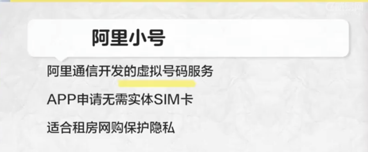 何謂阿里小號?阿里小號是阿里巴巴集團旗下阿里通信于2014年10月推出的虛擬電話號碼服務,該服務允許用戶在不添加實體SIM卡的情況下,通過手機APP就可獲得一個或多個虛擬號碼,用于通話、短信及各類賬號注冊。