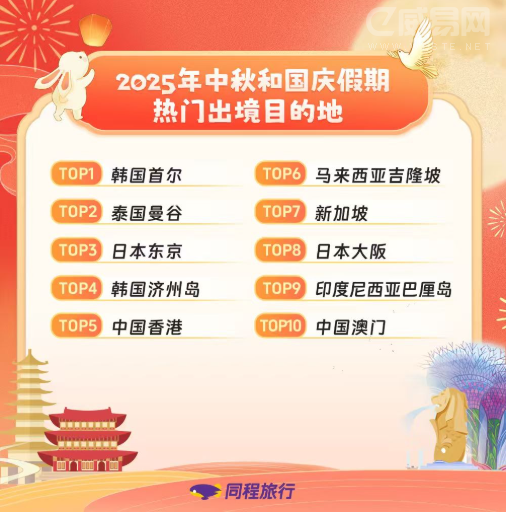 同程旅行數據顯示,截至9月11日,假期出行的國際機票搜索熱度同比增長超過60%。假期出境旅行目的地仍以東亞和東南亞熱門城市為主,韓國在中秋和國慶假期前對中國團體游客試行免簽,明顯拉動了赴韓機票熱度增長。