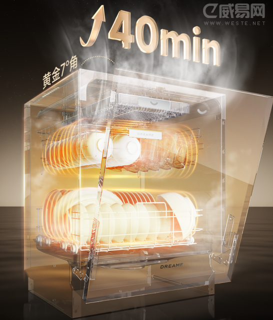 與傳統單熱風烘干技術相比,這一組合拳式的烘干方案實現了效率與效果的全面超越。其干燥指數對比單熱風烘干提升10.4%,而烘干時間卻大幅縮短近40分鐘。這意味著用戶無需再為餐具上殘留的水漬或內部返潮而煩惱,洗滌結束后即可獲得即干即用的餐具,省時省心,極大提升了使用效率與幸福感。