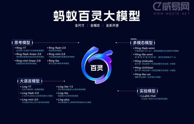 據了解,截止目前螞蟻百靈大模型已經發布18款模型,已形成從160億總參數到1萬億總參數的大語言模型產品矩陣,其中兩款萬億參數模型—萬億參數通用大語言模型Ling-1T、萬億參數思考模型Ring-1T。隨著兩款萬億參數模型的發布,百靈大模型也正式步入2.0階段。