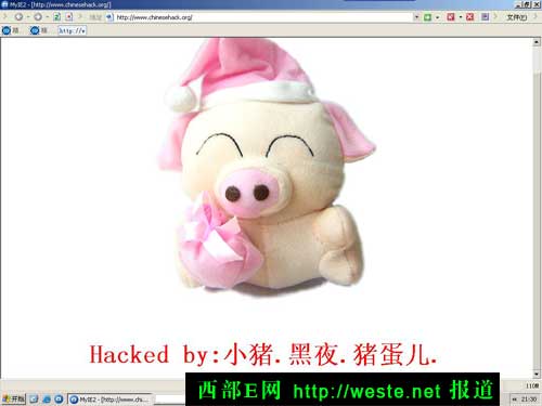 大約2004年4月2日晚上21:20左右,一些網友發現一個黑客安全性質的網站小鳳居chinesehack.org被一個名為“小豬.黑夜.豬蛋兒.”的高手修改了網站的首頁面。