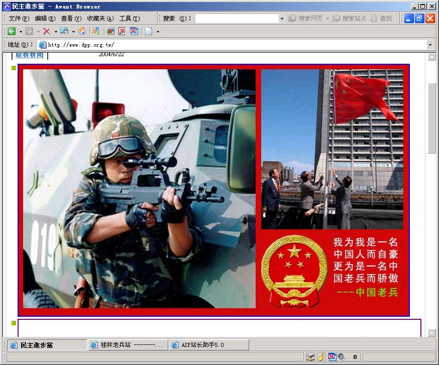 記者還找到了一家叫“中國黑客同盟”的網站,與中國紅客風格低調的風格相反,進入中國黑客同盟主界面,右邊,“提高網絡安全捍衛國家尊嚴,提倡免費資源推動民間交流”兩行白色大字分外醒目,左邊,“黑色帝國”的綠色符號串不斷變換,而中間,那面鮮紅跳躍的五星紅旗撩動得人心激蕩,熱血沸騰。這樣的黑客組織團結了一批愛國、而又初通網絡技術的少年。記者隨即注冊登陸到該同盟的聊天室,鍵入“臺灣”關鍵字,立時蹦出來30多條相關信息。有一位署名“東江瘦魚”的管理員截取了一段中國黑客在日本某網站上粘貼的網頁,抗議日本暗地支持“臺獨”的行為。另外有個跟帖寫道:我有朋友已經進入臺灣地區、日本的70多個網站,大家快頂。記者注意到他們的注冊時間,最早的是在今年3月份,看來這個網站才成立不久。再搜索,類似這樣的新鮮網站,不勝枚舉。