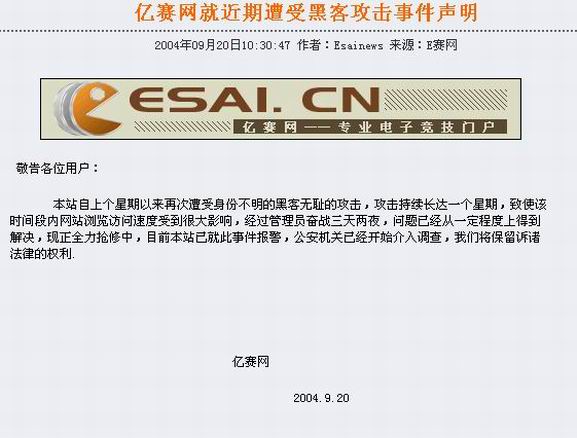 億賽網(wǎng)也不同程度的遭受黑客攻擊,以下是該網(wǎng)站發(fā)布的聲明